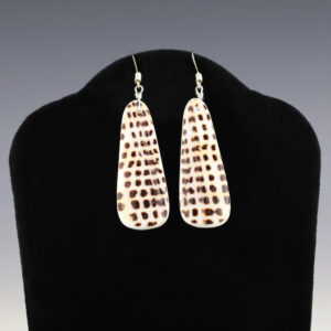Kewa (Santo Domingo) artist Ramona Bird made these beautiful earrings out of Olive Shell. A great addition to your Native American jewelry collection. Weighs 6 grams. 13/16” wide x 2” long 2 11/16″ long (including ear wire) Artist card included Kewa (Santo Domingo) artists are known for their heishi. ...