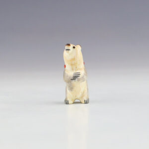 The Bear symbolizes healing and strength. Zuni artist Evalena Boone hand crafted this magnificent bear fetish. The carving is made out of Dolomite. 1 3/8” tall x 2 1/8” long x 3/4” wide Artist card included Zuni fetishes are carvings made from various materials by the Zuni people. Traditionally, fetishes...