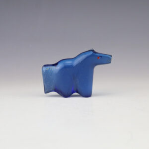 The Horse represents strength, swiftness, and possesses healing powers. Zuni artists Leland Boone and Daphne Quam hand carved this wonderful horse fetish. The carving is made out of Glass with Turquoise eyes. 1 3/8” tall x 2 7/8” long x 3/4″ wide Artist card included...