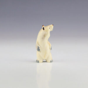 The Bear is the Guardian fetish of the West, and represents healing and strength. This wonderfully carved bear fetish is made out of Antler. Zuni artist Gabe Sice is known for this outstanding bears. This carving would make a great addition to your Native American art or Zuni fetish collection. ...