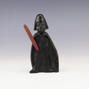 Zuni artist Cody Nastacio made this fabulous Darth Vader fetish. Wonderfully carved out of Jet and Pipestone. Great shape with lots of character. Signed 2 15/16” tall x 1 3/4” long x 1” wide Artist card included Zuni fetishes are carvings made from various materials by the...