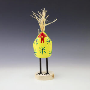 Navajo artist, Chandler Begaye made this wonderful cowboy chicken out of wood and straw. Wearing a cowboy hat, boots, and vest, he is hand painted. Navajo folk is non-utilitarian and non-ceremonial, but it still reflects the culture and daily life of its people. Signed. 5 1/8” tall x 1 7/8”...