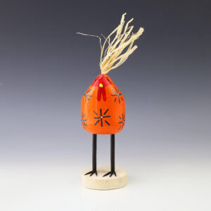 Navajo folk art consists of figurines usually carved out of wood that depict Navajo life and culture. Navajo artist Baltrina Abeyta hand carved this marvelous chicken ornament out of wood and straw. 2 1/4” tall x 2 5/8” long x 1” wide (height is to top of straw tail) Artist...