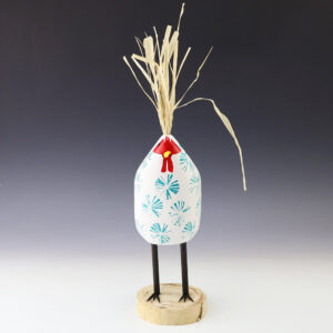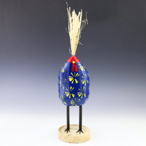 Navajo artist Marvin Jim made this whimsical mudhead chicken out of wood with a straw tail. Marvin Jim is one of the most innovative Navajo folk art carvers. As a child, Marvin Jim carved his own toy trucks and people from wood, because there were no commercial toys available. After...