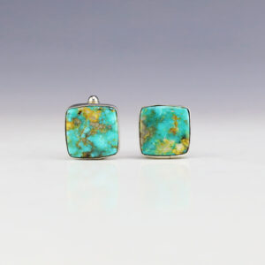 Striking cufflinks that will compliment any shirt. Handmade out of sterling silver and Turquoise. Weighs 8 grams. The cufflinks have nickle findings for durability. Signed 5/8” long x 5/8” wide The Navajos began working with silver in the 19th century, and began making things like buckles, bridles, buttons,...