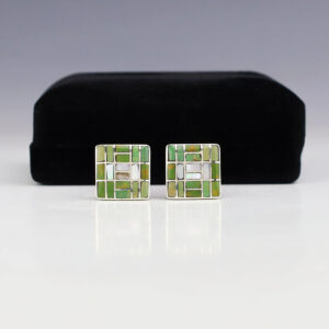 Zuni jewelers Nancy and Sheldon Westika have been making jewelry since the 1970’s and they are known for their fine channel work. Handsome cufflinks that feature natural Emerald Valley Turquoise and Mother of Pearl Shell inlaid in a sterling silver setting. Hand made with high quality craftsmanship that is a...
