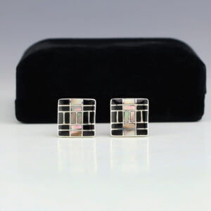 Zuni jewelers Nancy and Sheldon Westika have been making jewelry since the 1970’s and they are known for their fine channel work. Handsome cufflinks that feature natural Jet and Mother of Pearl Shell inlaid in a sterling silver setting. Hand made with high quality craftsmanship that is a great representation...