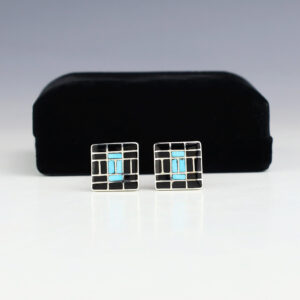 Zuni jewelers Nancy and Sheldon Westika have been making jewelry since the 1970’s and they are known for their fine channel work. Handsome cufflinks that feature Kingman Turquoise and Jet inlaid in a sterling silver setting. Hand made with high quality craftsmanship that is a great representation of the traditional...