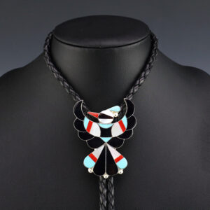 ZUNI INLAY THUNDERBIRD BOLO TIE BY DELWIN GASPER