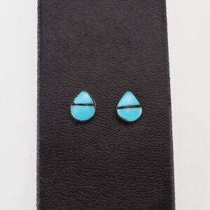 Each earring features Turquoise set into a sterling silver setting. Hand made by Zuni artist Donovan Mahkee. These wonderful earrings will become a versatile accessory in your jewelry collection. 1/4” x 7/16″ Artist card included Zuni Pueblo is the largest pueblo in New Mexico, and because of...