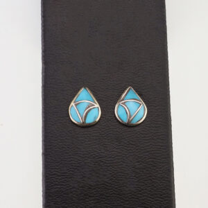 Each earring features Turquoise inlaid into a sterling silver setting. Hand made by Zuni artist Kristi Waatsa. These gorgeous earrings will become a versatile accessory in your jewelry collection. 5/16″ x 1/4″ Artist card included Zuni Pueblo is the largest pueblo in New Mexico, and because of...