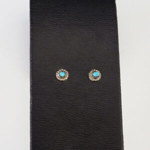 Each earring features Turquoise set into a sterling silver setting. Hand made by Zuni artist Thurza Leekya. These gorgeous earrings will become a versatile accessory in your jewelry collection. 3/8″ x 7/16″ Artist card included Zuni Pueblo is the largest pueblo in New Mexico, and...