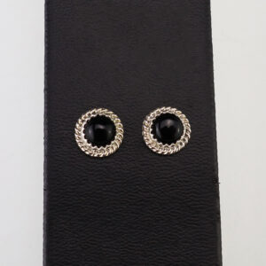 Lovely earrings hand made out of sterling silver and Onyx by Navajo silversmith Theresa Kinsel. These wonderful earrings will become a versatile accessory in your jewelry collection. 3/8″ x 3/8″ Artist card included The Navajos began working with silver in the 19th century, and began making things...