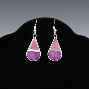 Zuni artists are known for their fine lapidary skills. These earrings are no exception. Zuni artists Eldrick and Charlotte Seoutewa made these lovely earrings out of sterling silver and Jet. Weighs 2 grams. 1/2” wide x 7/8” tall With ear wires are 1 3/8” in length Artist card...