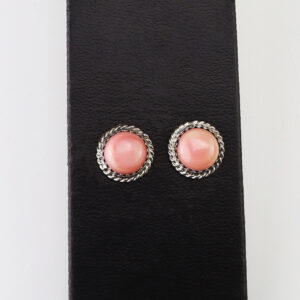 Lovely earrings hand made out of sterling silver and Pink Conch. These wonderful earrings will become a versatile accessory in your jewelry collection. Weighs 4 grams. Signed 9/16″ x 9/16″ The Navajos began working with silver in the 19th century, and began making things like buckles, bridles, buttons,...