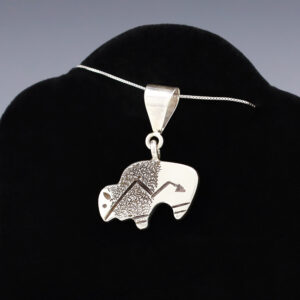 Stellar Buffalo pendant made out of sterling silver by Norman Woody. (Chain not included) A timeless beauty that you will enjoy for years to come. Weighs 12 grams. Signed 1 1/8” wide x 1 1/2” long Artist card included The Navajos began working with silver in the...
