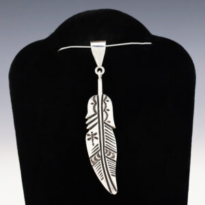 NATIVE AMERICAN NAVAJO STERLING SILVER FEATHER PENDANT BY GARY CUSTER