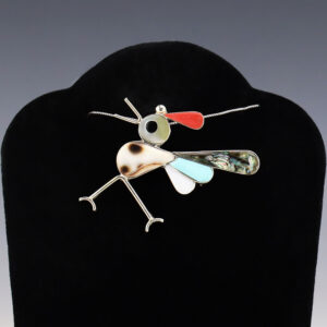Zuni artists are known for their fine lapidary skills. Each stone is hand cut, polished, and set into a sterling silver setting. Zuni jeweler Diane Lonjose made this breathtaking Dragonfly pendant. Sterling silver with natural Kingman Turquoise and natural Kingman Water Web Turquoise. This can be worn as a pendant...