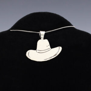 Navajo silversmith Lucille Platero made this stellar Cowboy hat pendant out of sterling silver. A timeless beauty that you will enjoy for years to come. Weighs 2 grams. (Chain not included) 1 3/16” wide x 1” long Artist card included The Navajos began working with silver in...