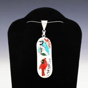 NATIVE AMERICAN ZUNI BLUE JAY & CARDINAL PENDANT BY QUINTIN QUAM