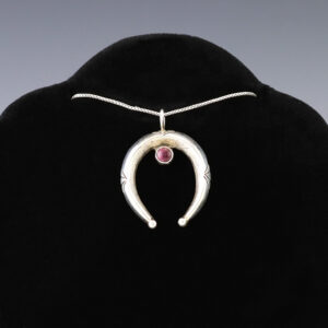 Navajo artist Monica Smith made this beautiful squash blossom pendant out of sterling silver and Spiny Oyster. It has a satin finish. A timeless beauty that you will enjoy for years to come. Weighs 16 grams. Signed. 1 3/8” wide x 2 5/8” long Artist card included ...