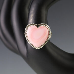 NAVAJO STERLING SILVER & PINK CONCH HEART RING BY PRISCILLA SMITH 9