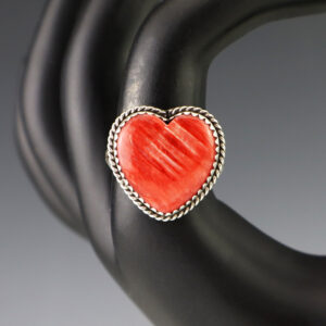 NAVAJO STERLING SILVER & SPINY OYSTER HEART RING BY PRISCILLA SMITH 9