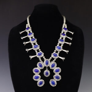 Zuni artist Carlo Lonjose made this beautiful lariat necklace. Sterling silver and set with natural Lapis. An exquisite statement piece that you will enjoy for many years. The necklace weighs 28 grams. Signed 1/2″ wide x 23 1/2” long-Necklace Artist card included Zuni Pueblo is the...