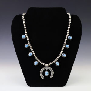 NATIVE AMERICAN NAVAJO NUMBER EIGHT TURQUOISE SQUASH BLOSSOM NECKLACE BY MIKE THOMAS JR