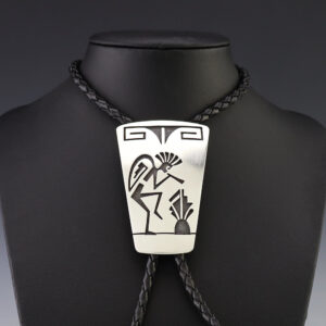 HOPI STERLING SILVER KOKOPELLI BOLO TIE BY DARREN SEWEYESTEWA