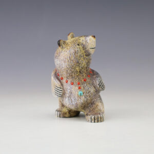 Navajo artist Marvin Jim made this fabulous bear out of wood. Marvin Jim is one of the most innovative Navajo folk art carvers. As a child, Marvin Jim carved his own toy trucks and people from wood, because there were no commercial toys available. After marrying Grace Begay, who came...