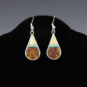 Zuni jewelry artist David Boone hand made these lovely earrings. Made out of sterling silver and inlaid with Turquoise, Jet Coral, and Mother of Pearl Shell. Weighs 4 grams. Signed 3/4” x 2 1/4″ Artist card included Zuni Pueblo is the largest pueblo in New Mexico, and because of its...