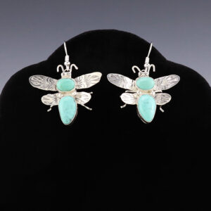 Beautiful bee earrings made out of sterling silver and Turquoise by Lucille Platero. These fabulous earrings will become a versatile accessory in your jewelry collection. Weighs 6 grams. 1 1/4″ x 1 1/8″ 1 5/8″ long (including ear wires) Artist card included The Navajos began...