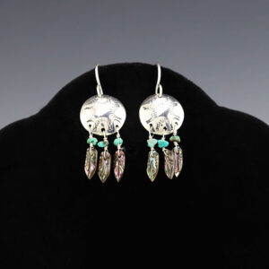 Beautiful earrings hand made out of sterling silver and beadwork. Hand made by Navajo silversmith Alberta Largo. These fabulous earrings will become a versatile accessory in your jewelry collection. Weighs 2 grams. 7/16″ x 3/4″ 1 3/8″ long (including ear wires) Artist card included The Navajos began working with silver...