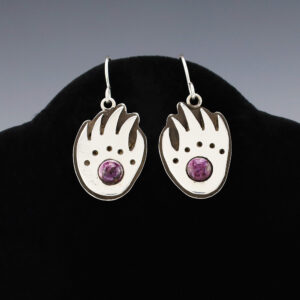 Beautiful earrings hand made out of sterling silver and Pink Conch by Navajo silversmith Mekechto Jim. These wonderful earrings will become a versatile accessory in your jewelry collection. Weighs 14 grams. 1 1/8″ x 1 5/16″ With ear wires are 1 15/16” in length Artist card included...