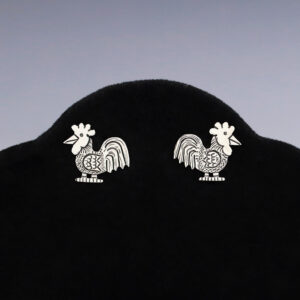 Fabulous Rooster earrings hand made out of sterling silver by Navajo artist Zandra Tahe. These fabulous earrings will become a versatile accessory in your jewelry collection. Weighs 4 grams. 11/16″ x 9/16″ Artist card included The Navajos began working with silver in the 19th century, and began making things...