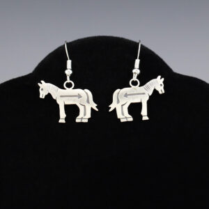 Marvelous horse earrings hand made out of sterling silver. Hand made by Navajo silversmith Robert Gene. These fabulous earrings will become a versatile accessory in your jewelry collection. Weighs 2 grams. Signed. 7/8″ x 5/8″ 1 1/4″ long (including ear wires) Artist card included The Navajos began...
