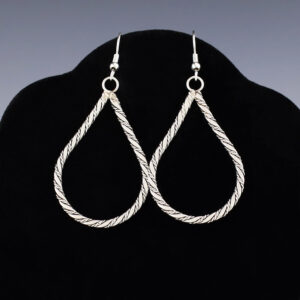 Lovely hoop earrings hand made out of sterling silver. Hand made by Navajo silversmith Thomas Charley. These earrings will become a versatile accessory in your jewelry collection. Weighs 10 grams. Signed. 7/16″ x 13/16″ Artist card included The Navajos began working with silver in the 19th century,...