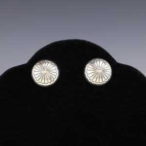 Lovely earrings hand made out of sterling silver. Hand made by Navajo silversmith Thomas Charley. These earrings will become a versatile accessory in your jewelry collection. Weighs 14 grams. Signed. 1 1/8″ x 1 1/8″ Artist card included The Navajos began working with silver in the 19th...