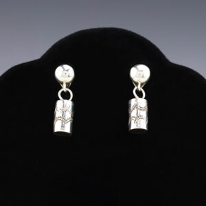 Beautiful barrel bead earrings hand made out of sterling silver. Hand made by Navajo silversmith Rosita Nastacio. These fabulous earrings will become a versatile accessory in your jewelry collection. Weighs 4 grams. 5/16″ x 1 3/8″ Artist card included The Navajos began working with silver in the...