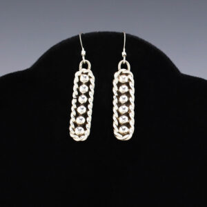 Lovely bead earrings hand made out of sterling silver and Turquoise by Navajo silversmith Samantha Martin. These wonderful earrings will become a versatile accessory in your jewelry collection. Weighs 6 grams. Signed 7/16″ x 1 1/4″ With ear wires are 1 13/16” in length Artist card included ...