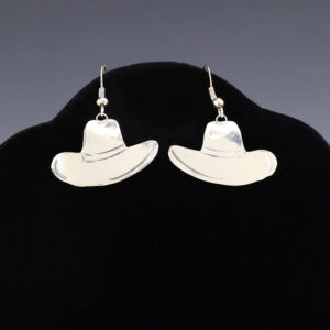 NATIVE AMERICAN NAVAJO STERLING SILVER COWBOY HATS EARRINGS BY LUCILLE PLATERO