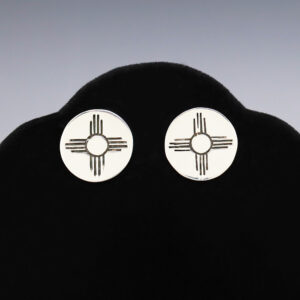 Fabulous Zia earrings hand made out of sterling silver. Hand made by Navajo silversmith Melvin Francis. For the Zia, the Zia sun symbol represents the Circle of Life: four winds, four seasons, four directions, and four sacred obligations. Weighs 8 grams. Signed 13/16″ in diameter Artist card...