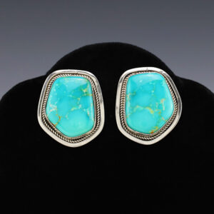 NATIVE AMERICAN NAVAJO SONORAN TURQUOISE EARRINGS BY DELLA WYLIE