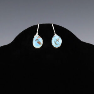 Gorgeous earrings hand made out of sterling silver and Golden Hills Turquoise. Hand made by Navajo silversmith Charmayne Charley. These fabulous earrings will become a versatile accessory in your jewelry collection. Weighs 16 grams. Signed. 9/16″ x 3″ Artist card included The Navajos began working with silver...