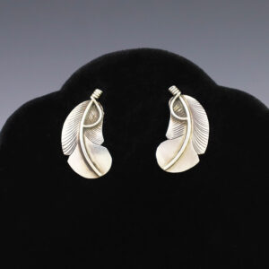 NATIVE AMERICAN NAVAJO STERLING SILVER FEATHER EARRINGS BY CHRIS CHARLEY