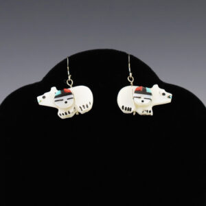 NATIVE AMERICAN ZUNI MOTHER OF PEARL SHELL BEAR EARRINGS BY DARRIN BOONE