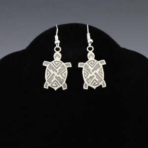 Fabulous turtle earrings hand made out of sterling silver. Hand made by Navajo silversmith Robert Gene. These fabulous earrings will become a versatile accessory in your jewelry collection. Weighs 2 grams. Signed. 5/8″ x 1″ 1 5/8″ long (including ear wires) Artist card included The...