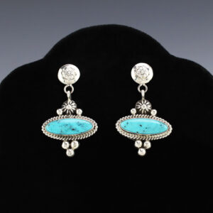 NAVAJO STERLING SILVER & CAMPITOS TURQUOISE EARRINGS BY RENELL PERRY