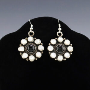 NAVAJO MOTHER OF PEARL SHELL & ONYX EARRINGS BY DEVIN BROWN